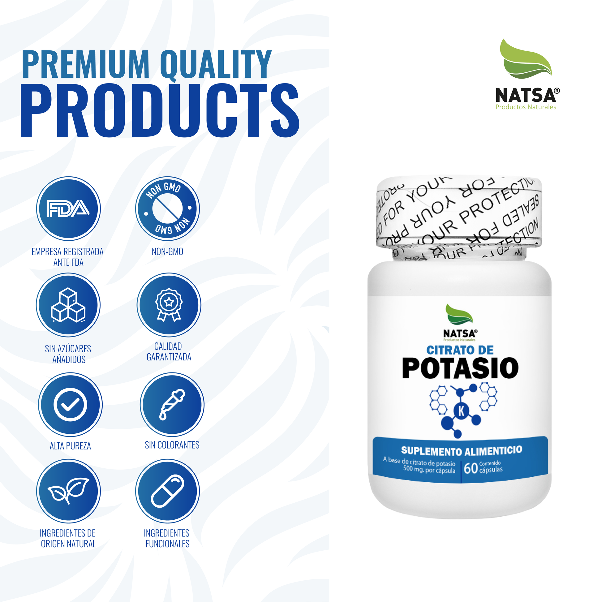 Conoce las cápsulas de Citrato de Potasio, un suplemento de calidad Premium con probados beneficios para la salud y bienestar. Producto natural que es libre de gluten y no contiene lactosa, por lo que es apto para personas con intolerancias alimentarias. Ideal para cuidar tu salud de manera natural.