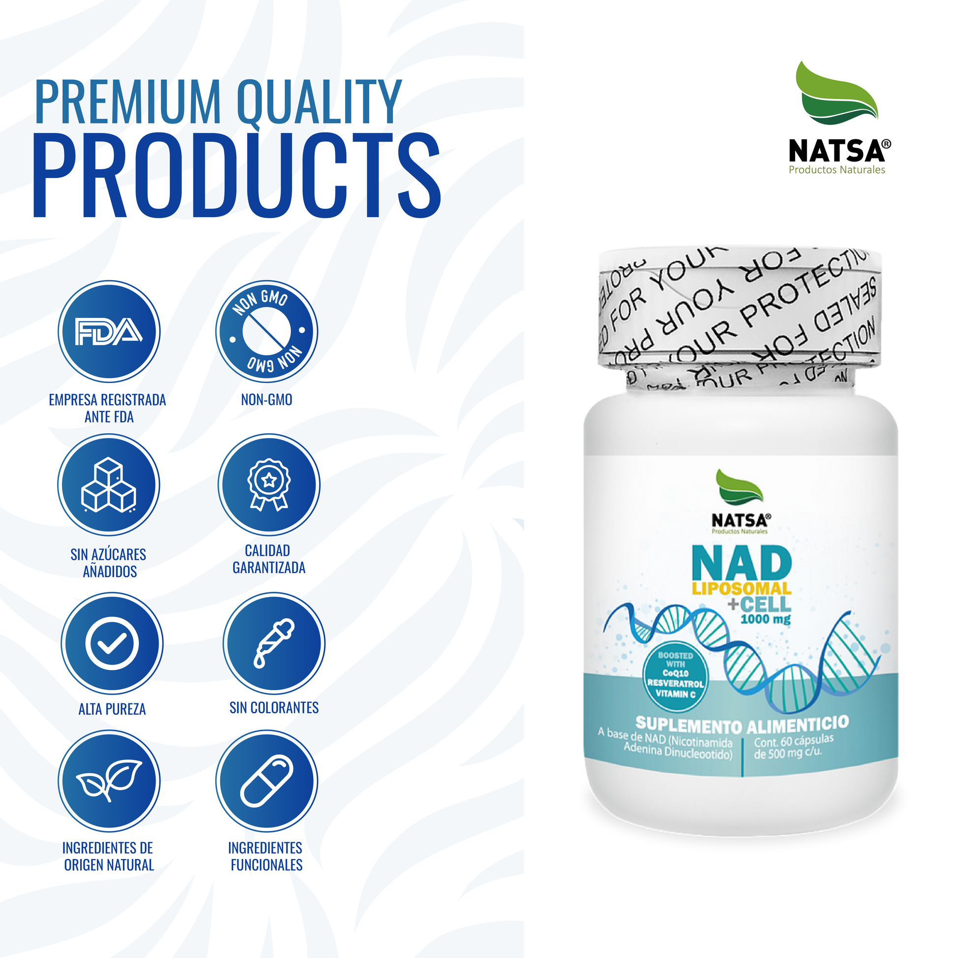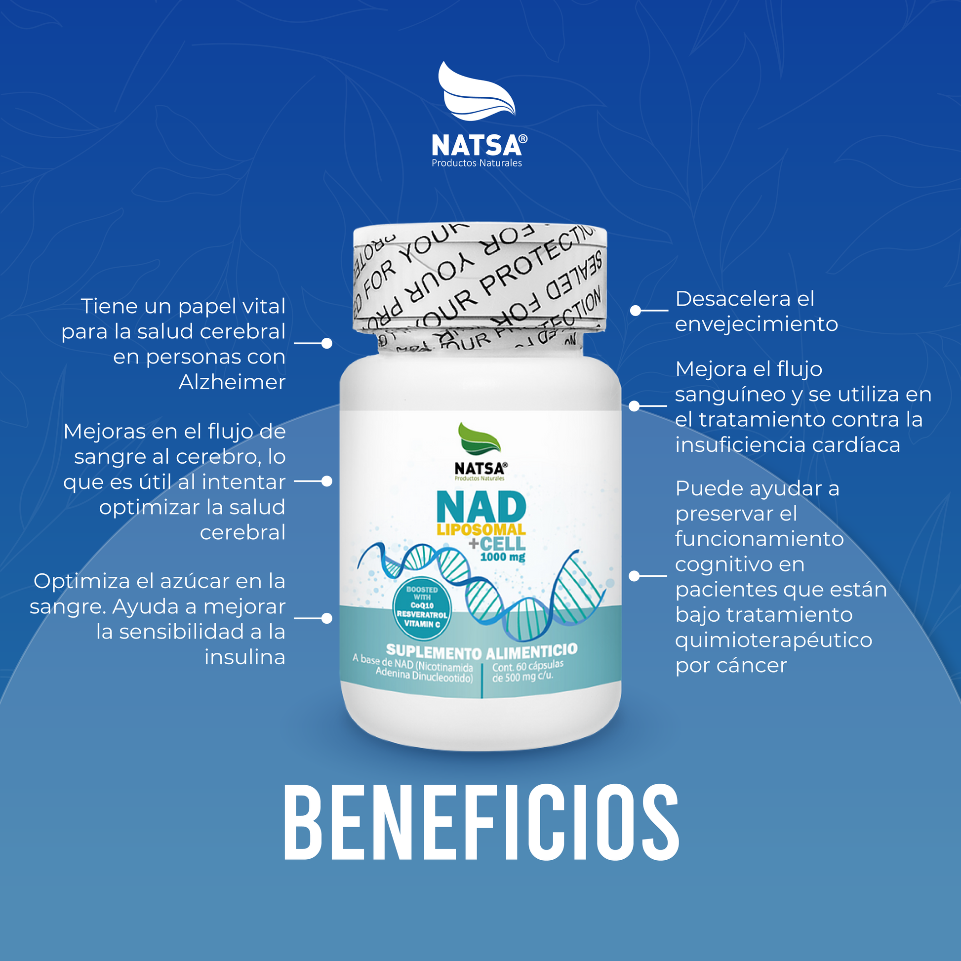 Conoce las cápsulas de NAD+Cell, un suplemento de calidad Premium con probados beneficios para la salud y bienestar. Producto natural que es libre de gluten y no contiene lactosa, por lo que es apto para personas con intolerancias alimentarias. Ideal para cuidar tu salud de manera natural.