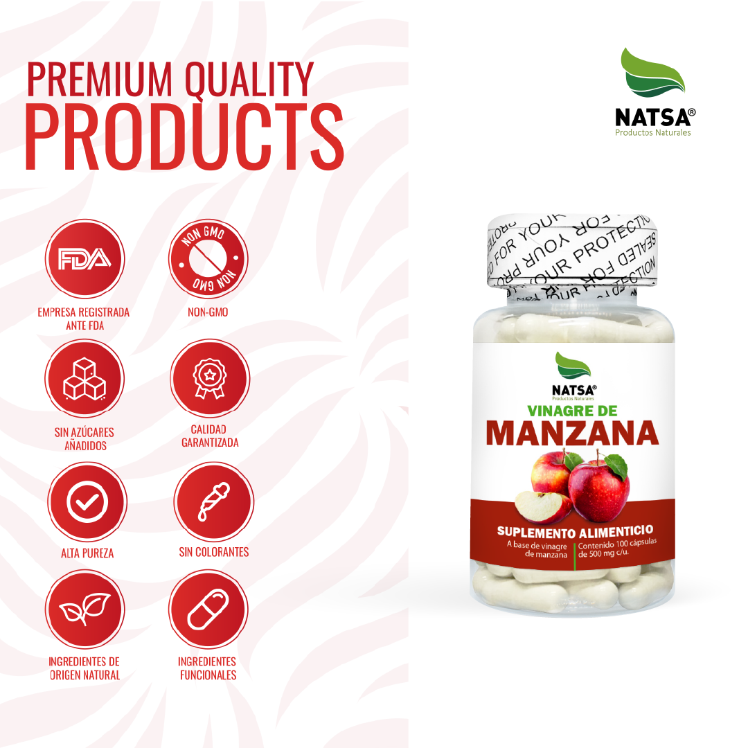 Conoce las cápsulas de Vinagre de Manzana, un suplemento de calidad Premium con probados beneficios para la salud y bienestar. Producto natural que es libre de gluten y no contiene lactosa, por lo que es apto para personas con intolerancias alimentarias. Ideal para cuidar tu salud de manera natural.